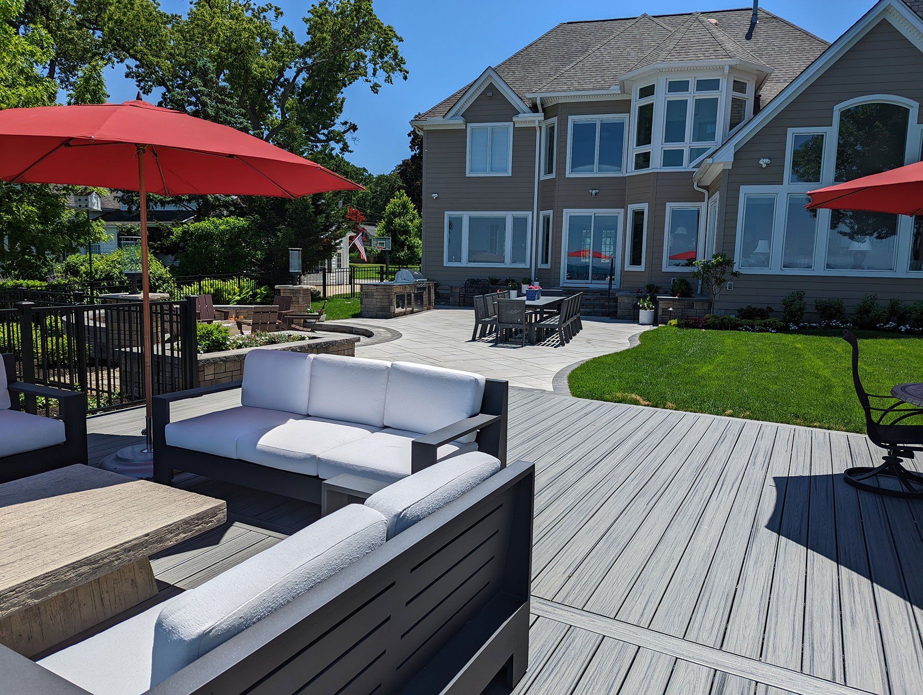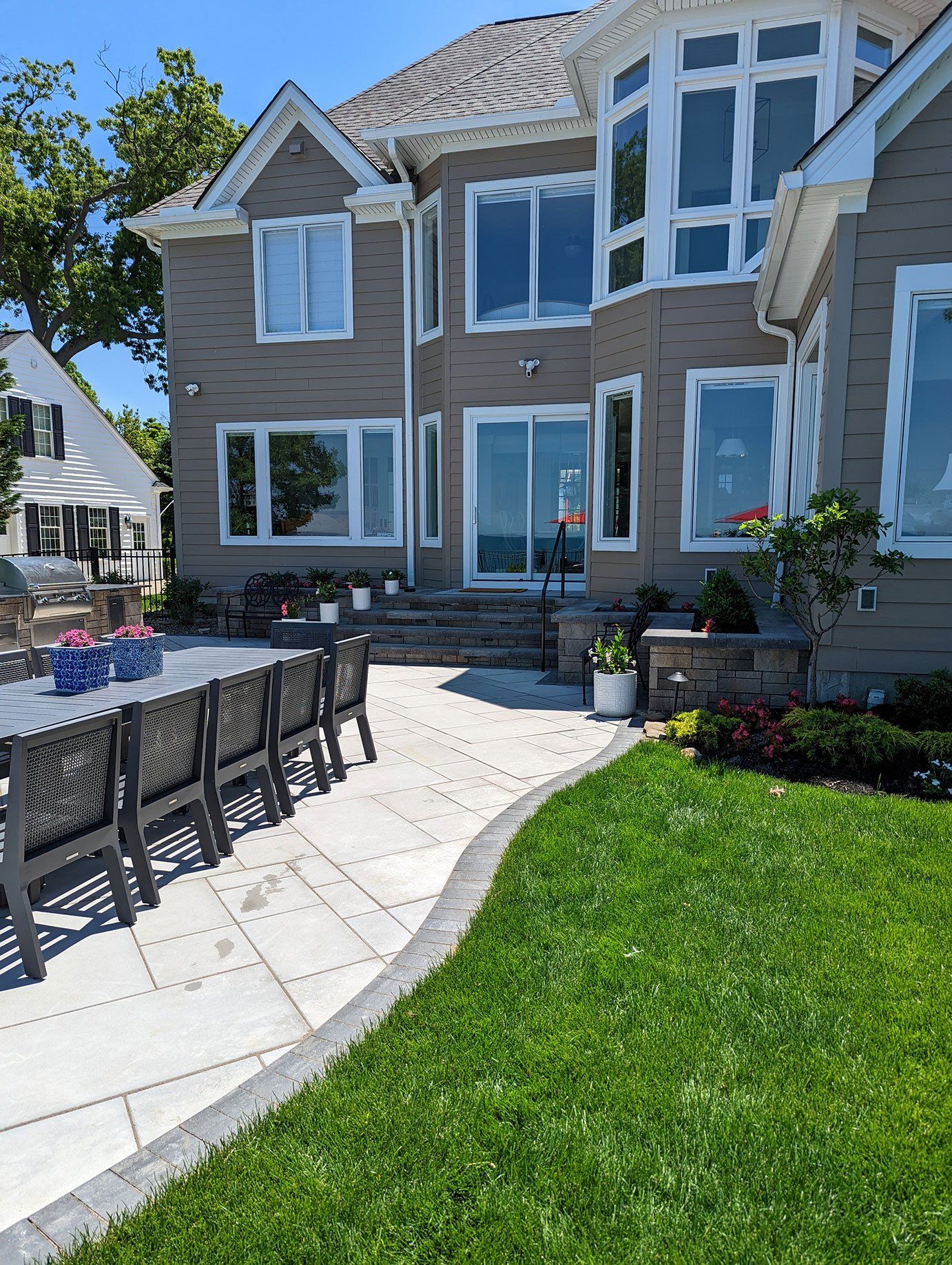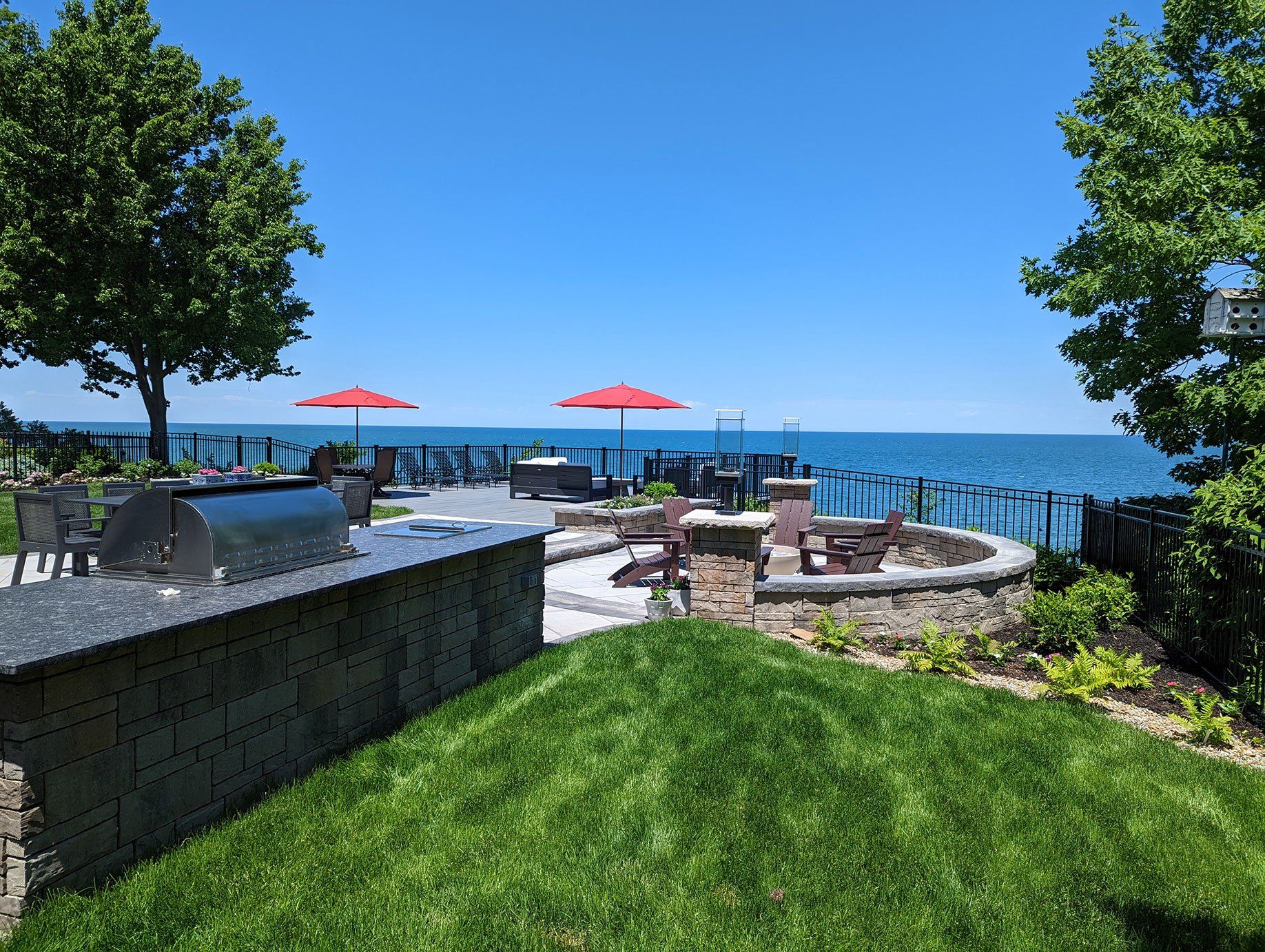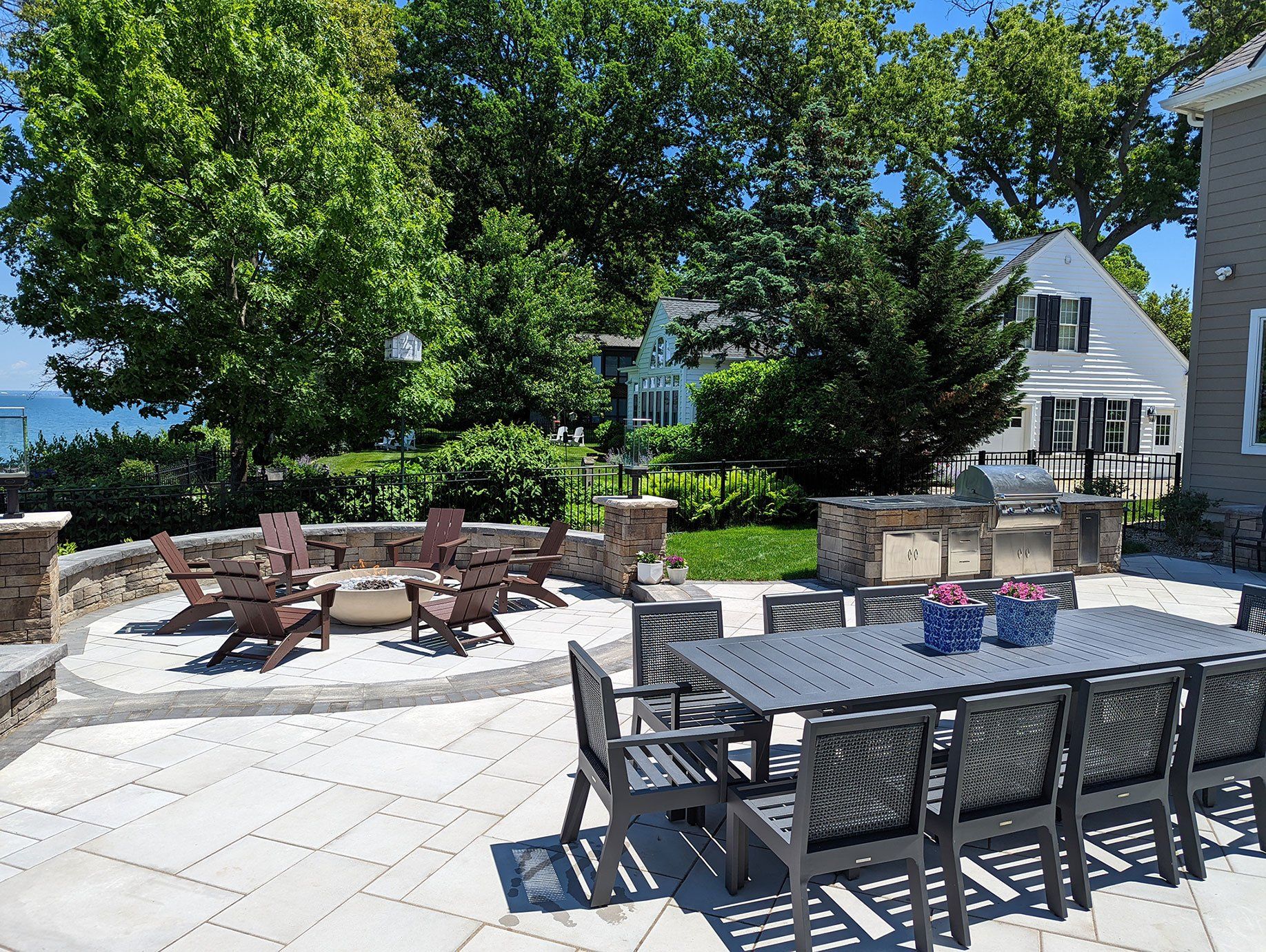 This project was by far one of Sasak Landscaping's favorite jobs! It was started in the winter of 2021 and finished in the spring of 2022. Unilock Beacon Hill Opal Flats were used for pavers with Belgard Holland Midnight as the soldier course. The steps, grill island, and planter boxes were created from Belgard Ashlar Tandem Shelby.